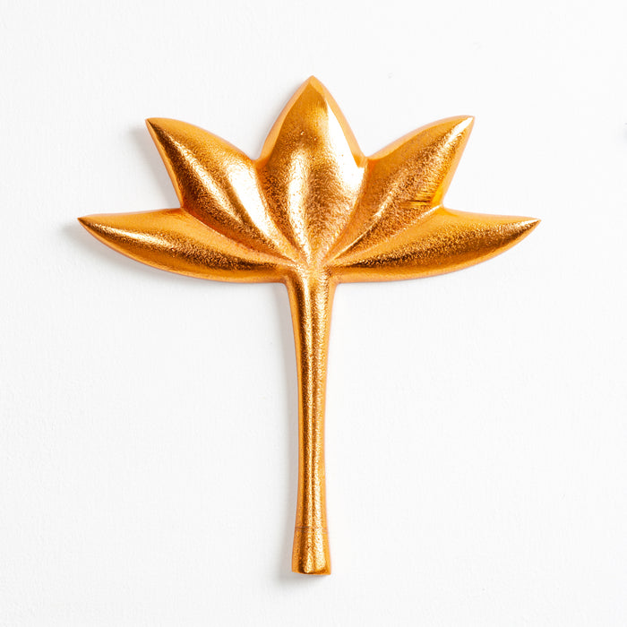 Bring home an ethnic symbol of purity and enlightenment with these wall-mounted lotuses. The metallic finish gives these lotus wall accents a subtle glam look making them versatile enough to adorn blank walls in almost all decor themes. This lotus wall accent is available in two different sizes.